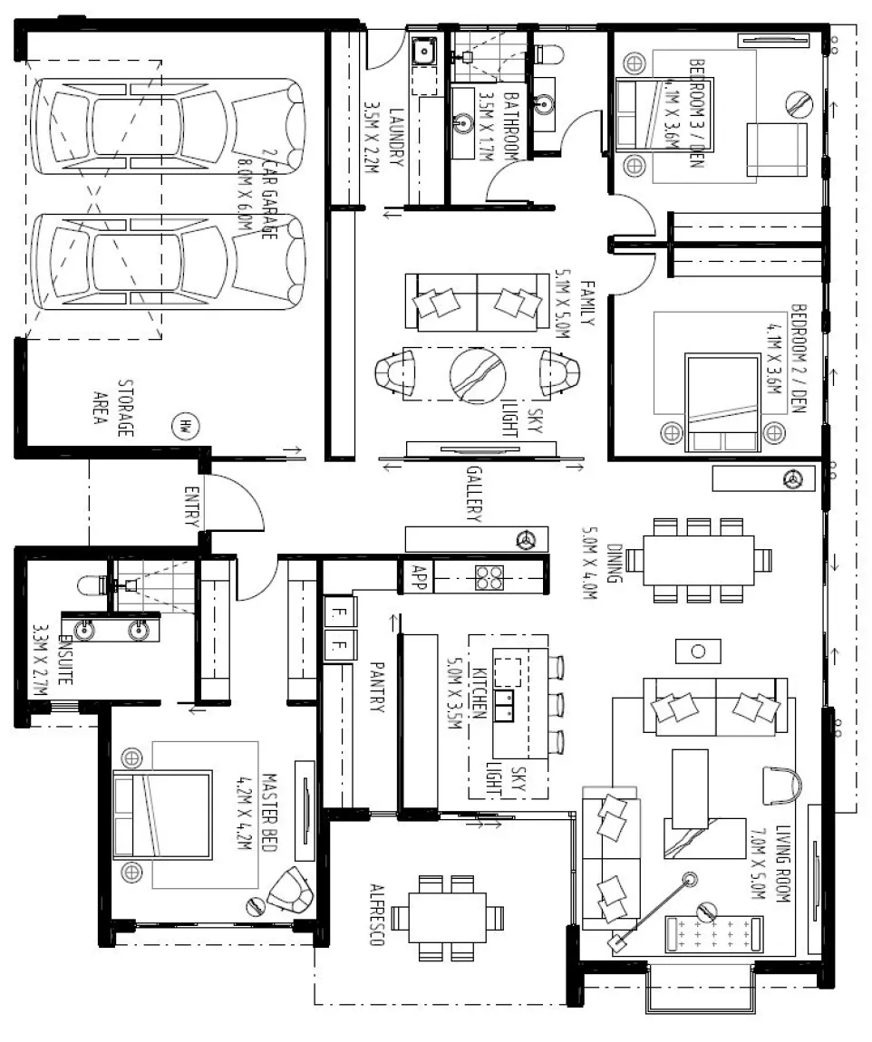 Expansive windows and stacking sliding doors provide loads of light and northerly sun into the home, as does the huge skylight featured above the central kitchen work-bench. Two Siemens ovens (one pyrolytic and one steam/convection) and the Asko induction cook top will keep the chef in the family very happy. A large walk in pantry provides you much appreciated storage, extra bench space and houses the integrated fridge and freezer.