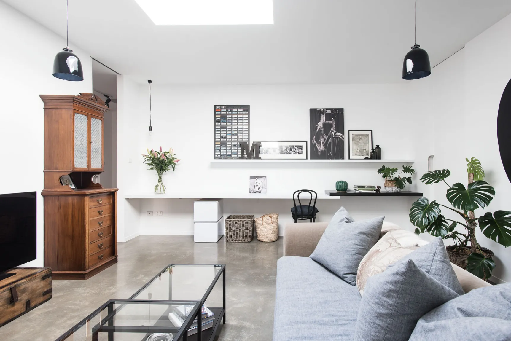 A separate internal 2nd living room is lightened by yet another skylight and has built in joinery down one side. This room could be used also as a private lounge area for the residents of bedrooms 2 and 3.