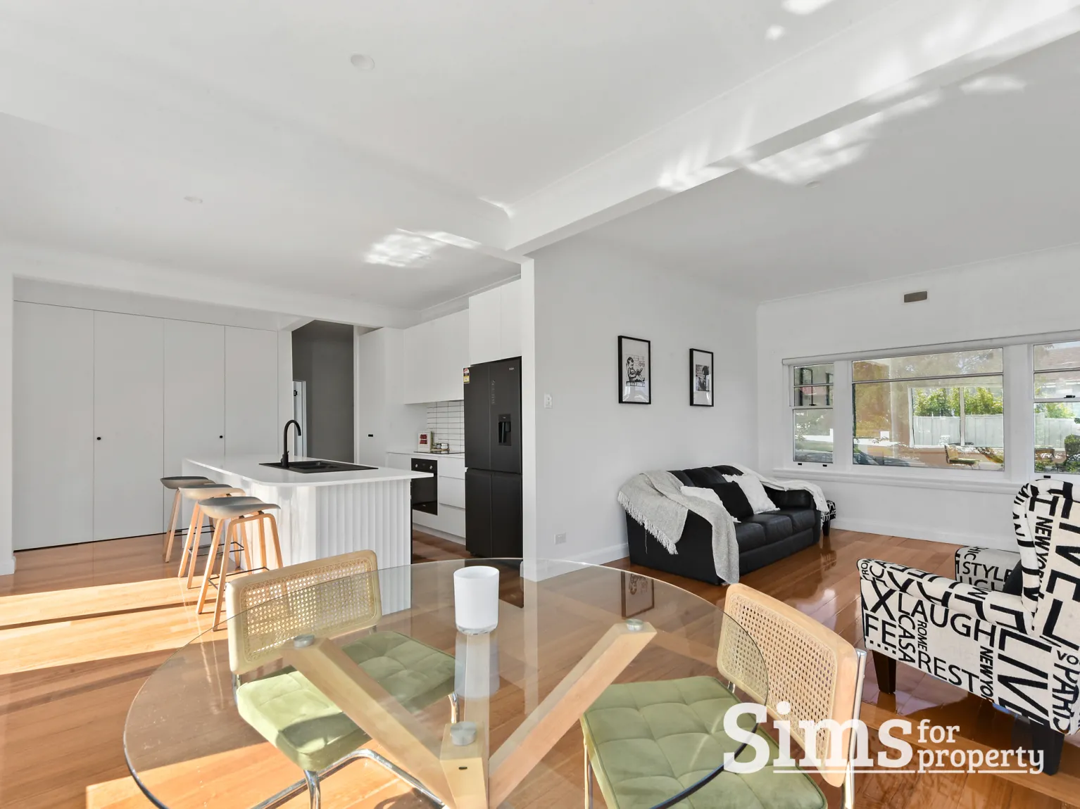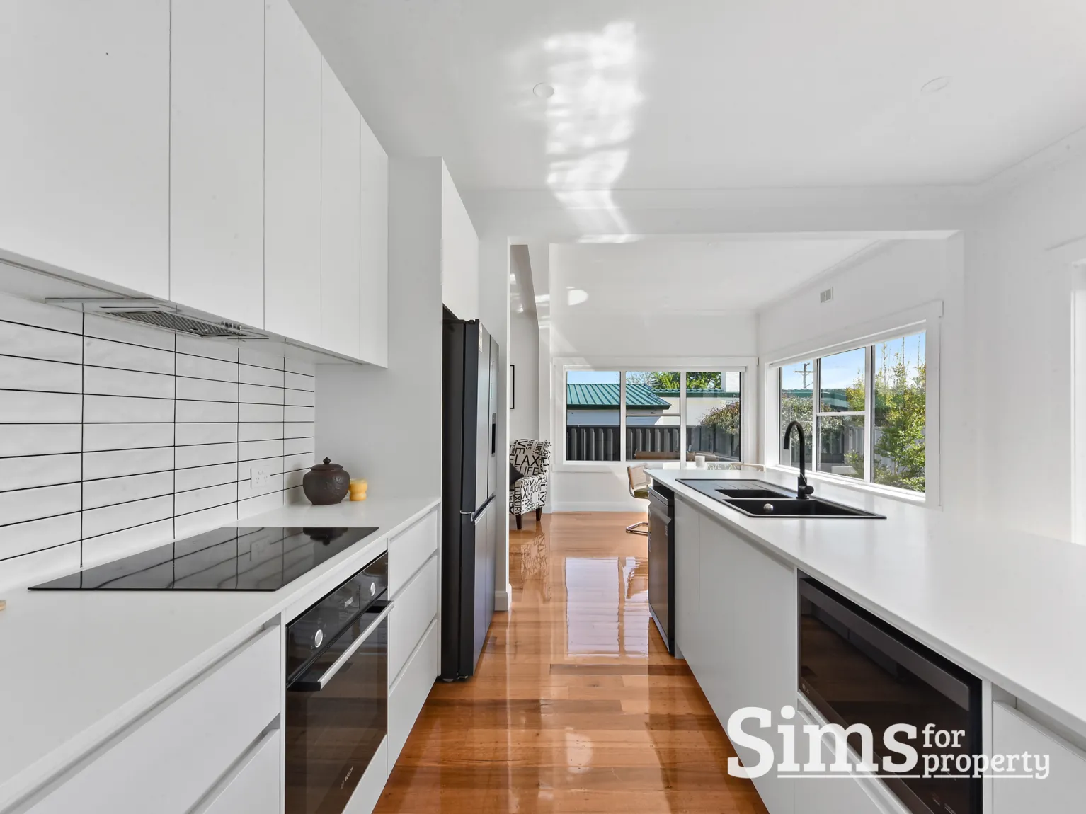 The heart of the home is a contemporary kitchen, featuring stone bench tops, ample bench space and cupboard storage, and quality appliances, perfectly designed for both everyday living and entertaining. Flowing seamlessly from the kitchen, the open-plan living and dining area is bathed in natural light, with polished Tasmanian Oak floorboards adding warmth and elegance throughout.